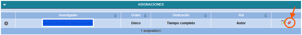 Si el investigador necesita eliminar un ítem de su CV bastará con eliminarse como autor. Para ello, se clica en la "goma de borrar" a la derecha de su nombre: