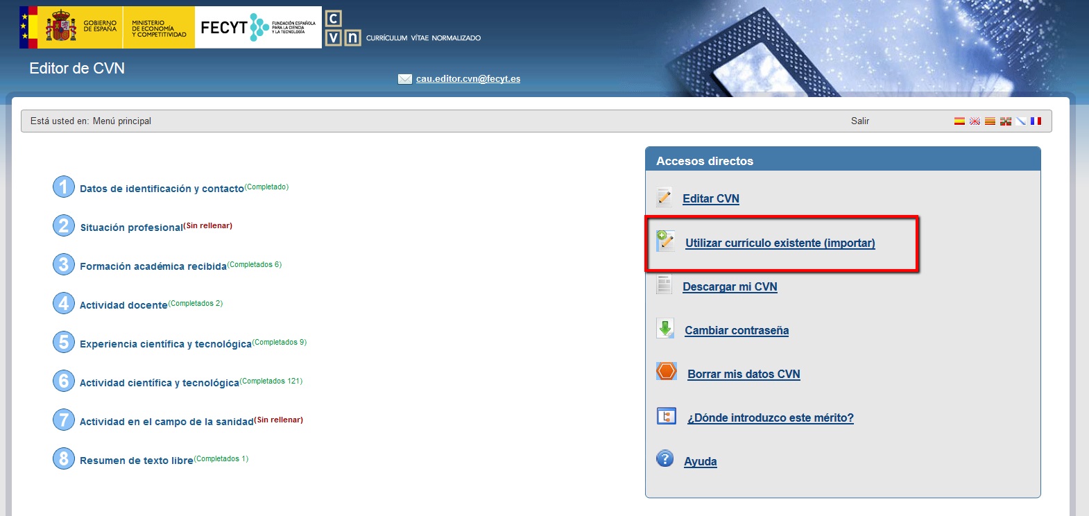 Actualmente ya es posible importar el CVN de FECYT de aquellos investigadores que dispongan de un PDF con su currículum en la citada plataforma.