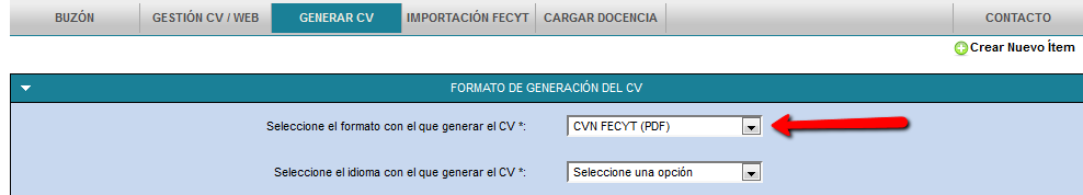 -Generar un CVN en formato FECYT desde el botón Generar CV